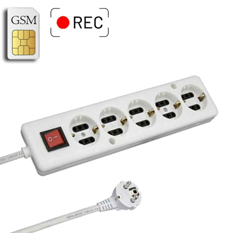 GSM Πολύμπριζο Κοριός με καταγραφή Ήχου 5 θέσεων με διακόπτη - Λευκό